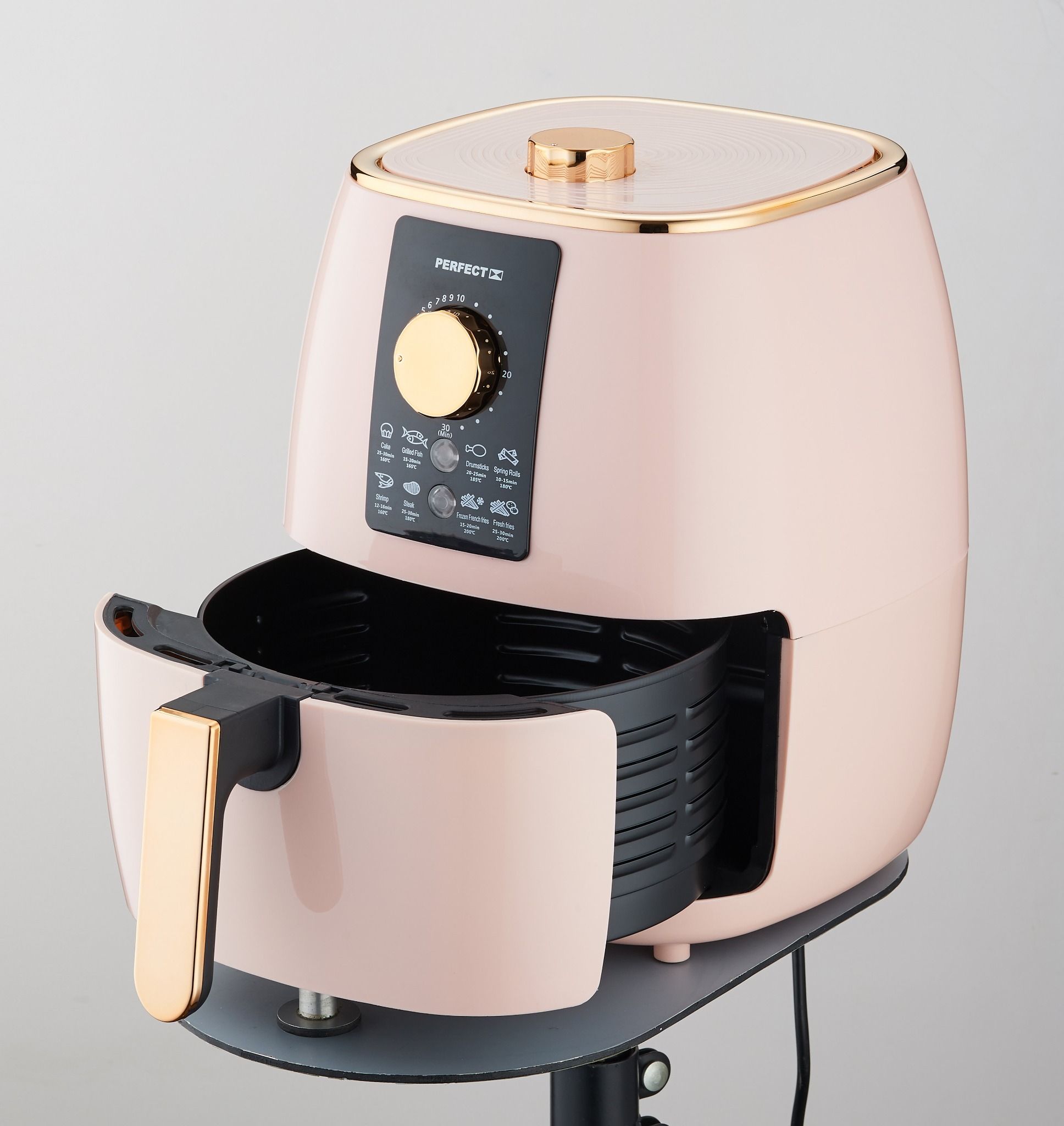 Nồi chiên không dầu PERFECT PF-A5P có sức chứa lên đến 5L. Dễ dàng chiên gà hay cá có trọng lượng lớn đủ dùng cho cã gia đình 4 người.