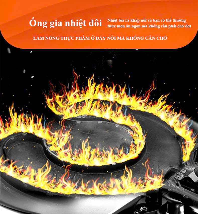- Ống gia nhiệt đôi giúp tiết kiệm thời gian nấu