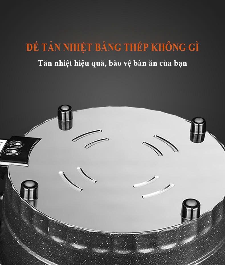 - Đế tản nhiệt bằng thép không gỉ giúp tản nhiệt hiệu quả, bảo vệ bàn ăn của bạn