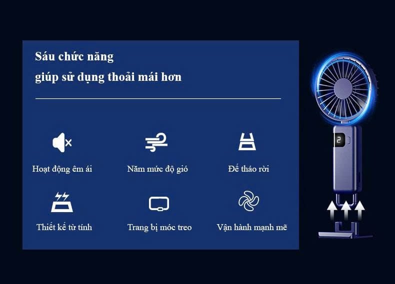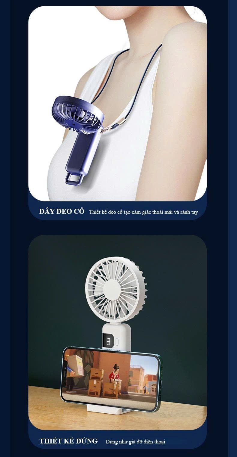 - Quạt cầm tay mini tích điện 5 cấp độ có màn hình LED hiển thị